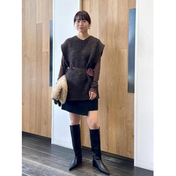穿背心的時候,因為長度很長,所以推薦用腰帶等腰圍標記。○